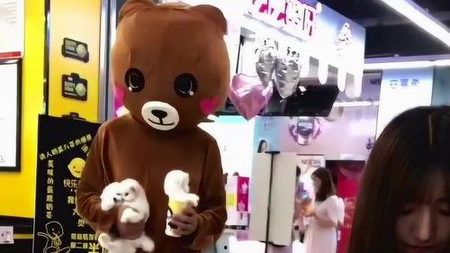 网红熊发传单视频,萌态可掬引围观